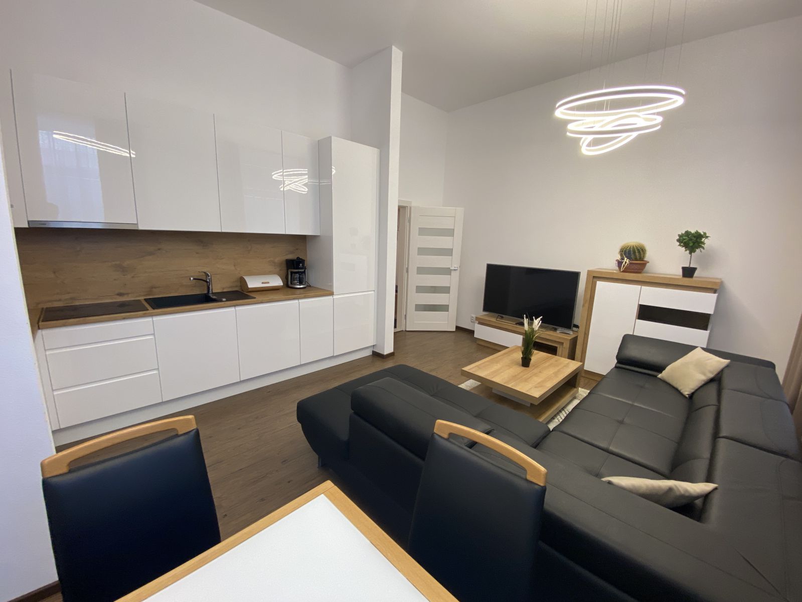 Apartmán (47 m2 + 30 m2 terasa) je vybavený modernou kuchyňou, priestrannou obývacou izbou, rýchlym Wi-Fi a inteligentnými riešeniami, ako je bezkľúčový vstup či možnosť nabíjania elektromobilov a elektrobicyklov. Hostia ocenia aj výbornú dostupnosť – zastávka električky „Pekná vyhliadka“ sa nachádza priamo pri apartmánovom dome, takže celé Tatry máte doslova na dosah.