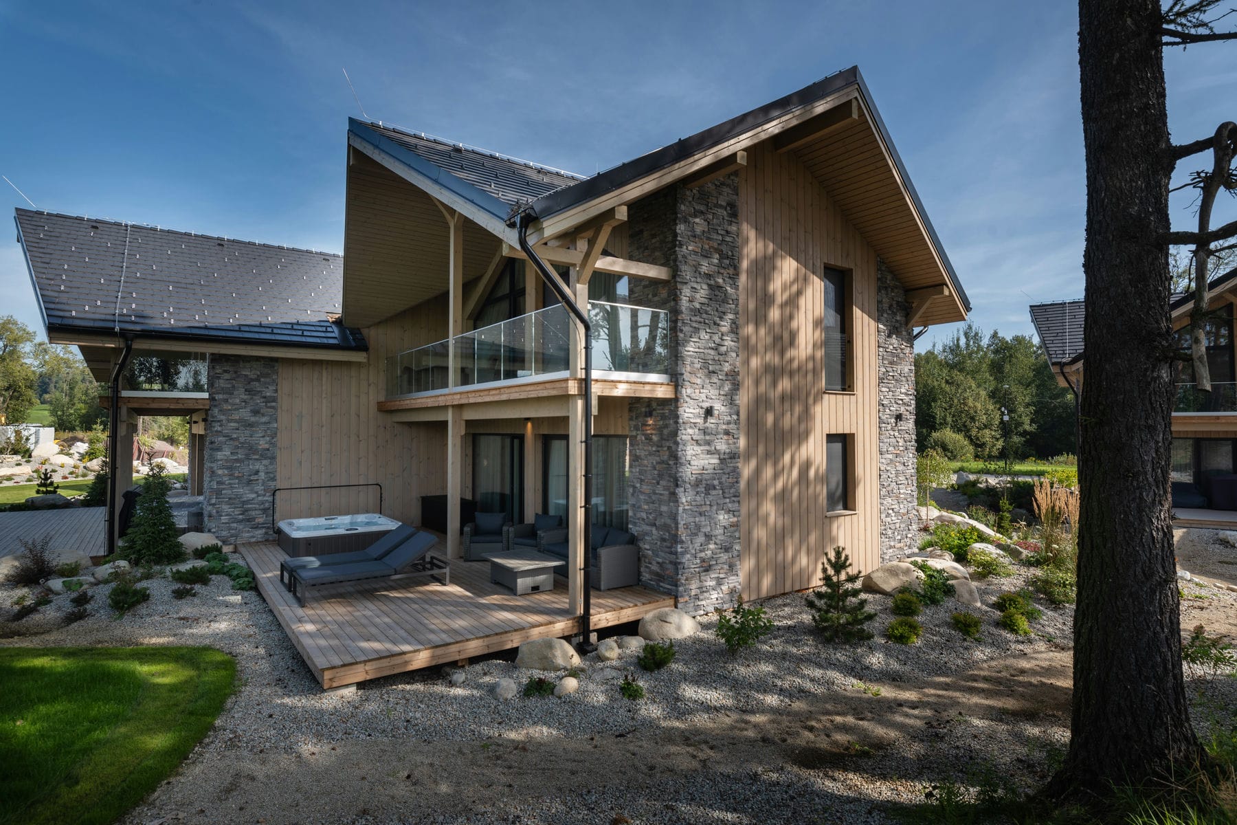 Po dni plnom turistiky, lyžovania alebo oddychu v prírode si môžete vychutnať zaslúžený relax na terase s panoramatickým pohľadom na tichú kotlinu pod vami. Apartmán Lebenski je ideálnym miestom pre páry, rodiny aj priateľov, ktorí hľadajú prémiové ubytovanie s dušou a komfortom v srdci Tatier.