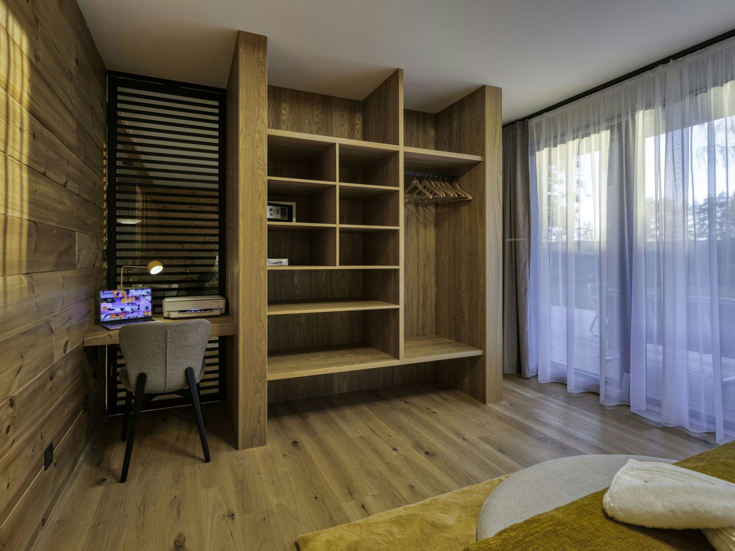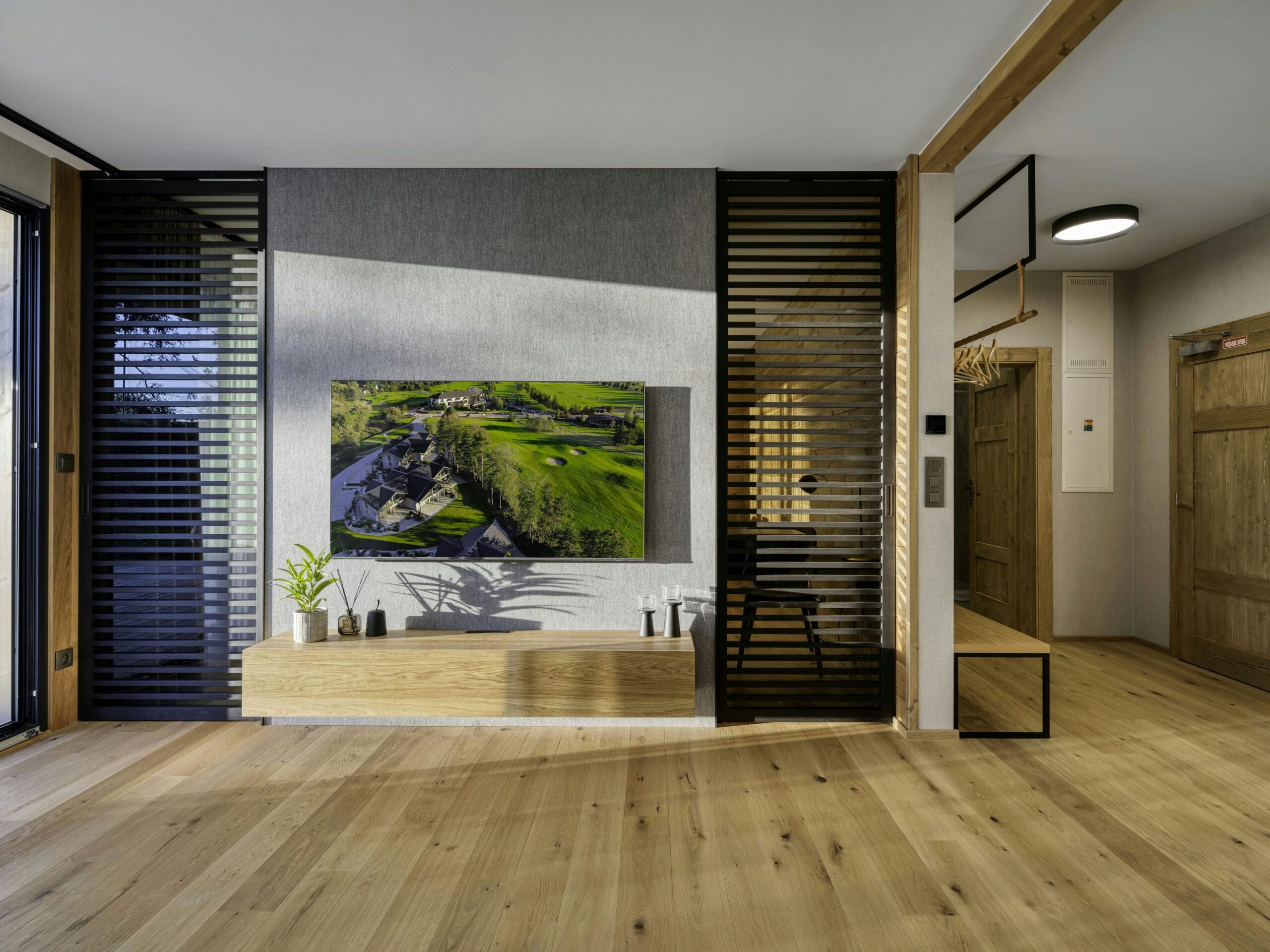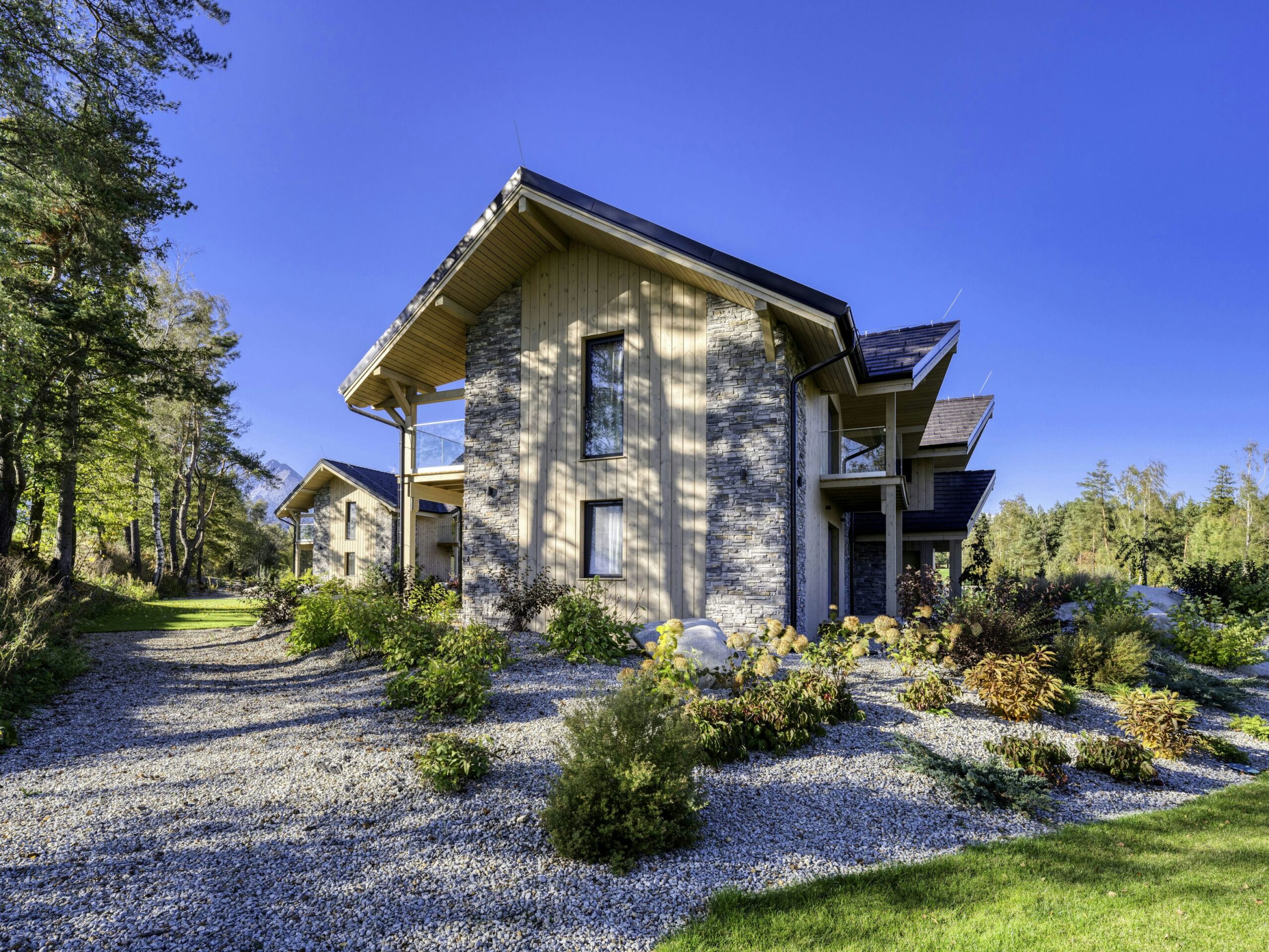Apartmány Golf Chalet sa nachádzajú priamo v srdci golfového ihriska Black Stork vo Veľkej Lomnici, situované na slnečných pozemkoch pod Lomnickým štítom. Pred apartmánovým domom preteká Skalný potok ktorý pramení v južnej stene Lomnického štítu a preteká celým územím tejto unikátnej lokality. Apartmán 3.12 sa nachádza v budove č.3 na prízemí, oproti hlavnému vchodu. Apartmán o rozlohe 75 m2 + 30 m2 terasy ponúka úžasný priestor. Uchváti veľkými presklenými plochami ktoré ponúkajú nerušený výhľad na golfové ihrisko a štíty Vysokých Tatier. Vysoký štandard prevedenia interiéru nesklame ani tých najnáročnejších vďaka kvalitným dreveným podlahám, nadčasovým obkladom, kvalitnému nábytku a elegantným doplnkom, to všetko pod drobnohľadom interiérovej dizajnérky p. Zuzany Niňajovej. Apartmán je vybavený plnohodnotnou kuchyňou, umývačkou riadu, automatickou práčkou, biznis kútikom s tlačiarňou. Pre majiteľov apartmánov sú k dispozícii odkladacie priestory nachádzajúce sa v spoločných priestoroch apartmánového domu na odkladanie športového vybavenia (lyže, bicykle, golf, kočík) a pod.